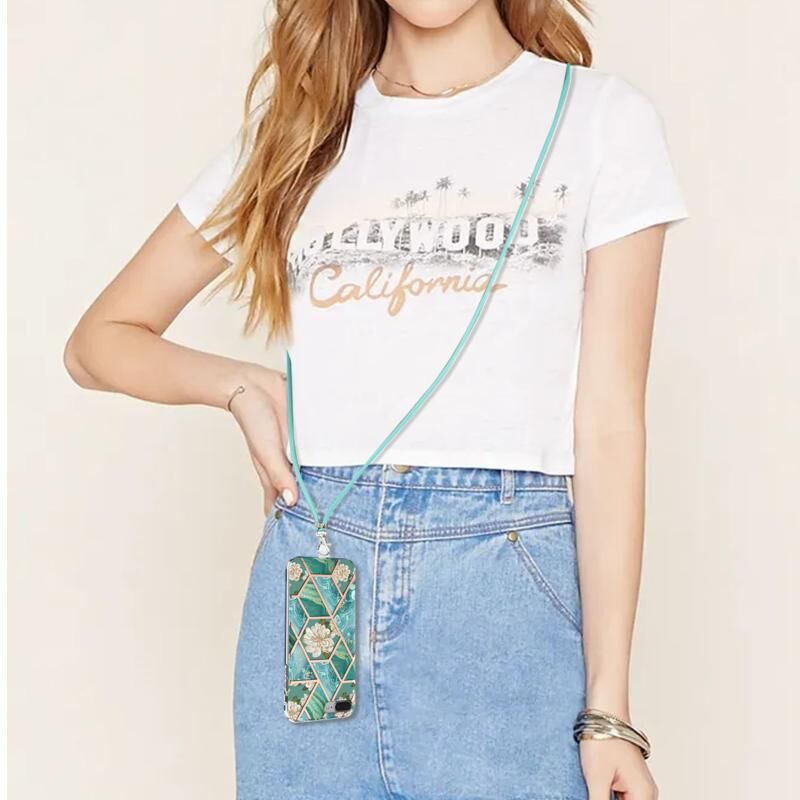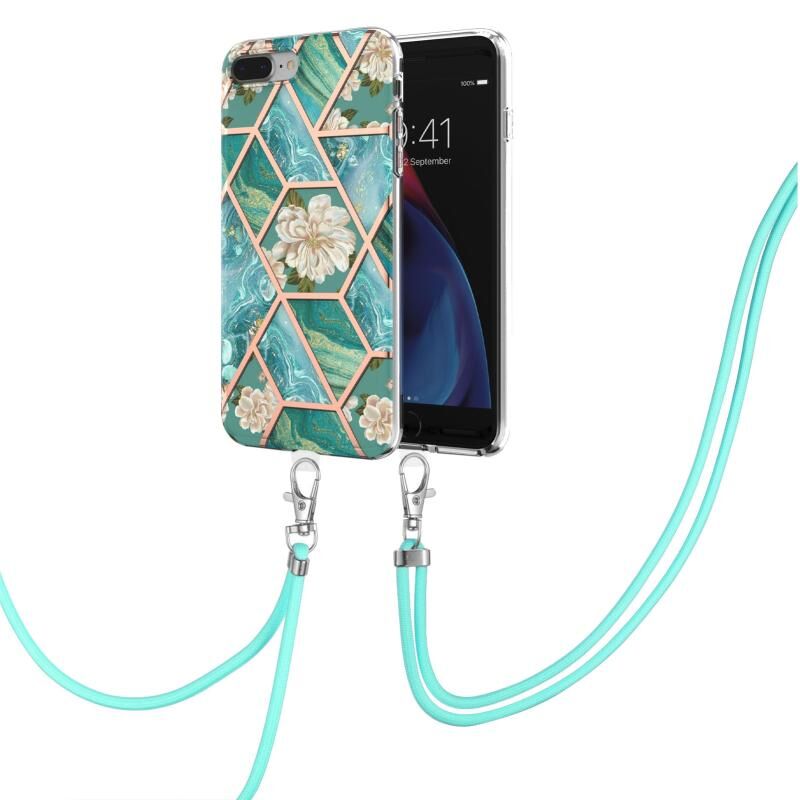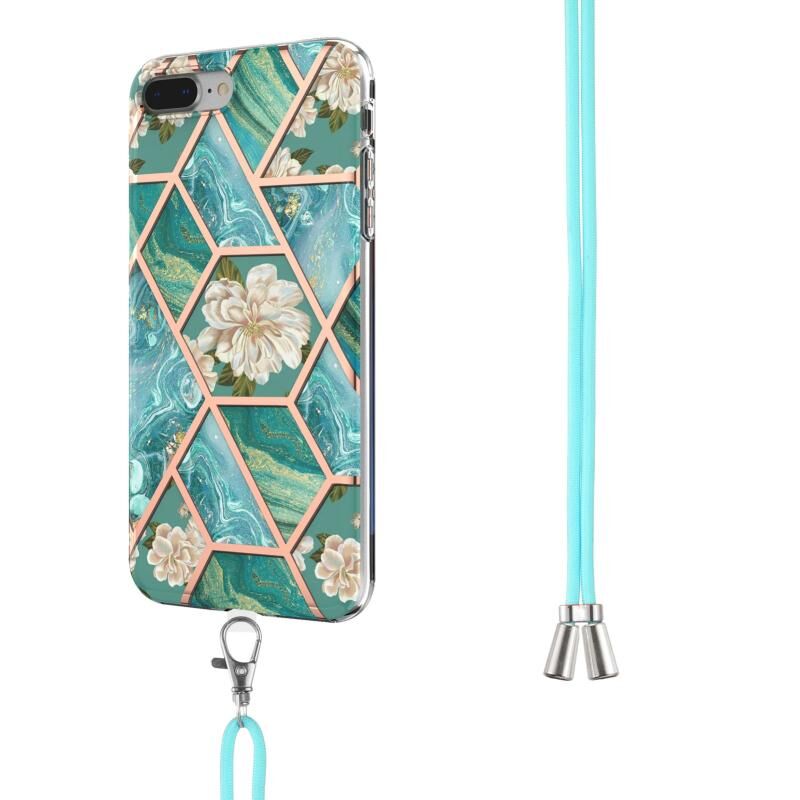 Electroplating Splicing Marble Flower Pattern TPU Shockproof Case with Lanyard For iPhone 8 Plus / 7 Plus(Blue Flower)