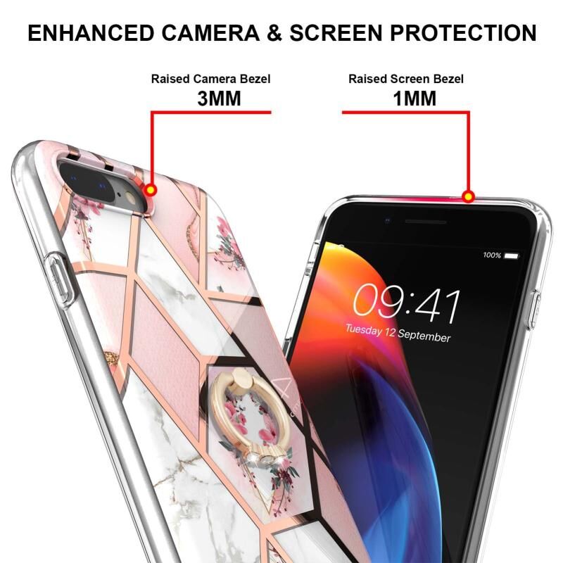 Θήκη Shockproof από TPU με σχέδιο μαρμάρου, ηλεκτρολυτική επιμετάλλωση και δαχτυλίδι στήριξης με ρητίνες για iPhone 7 Plus / 8 Plus (Ροζ Λουλούδι)