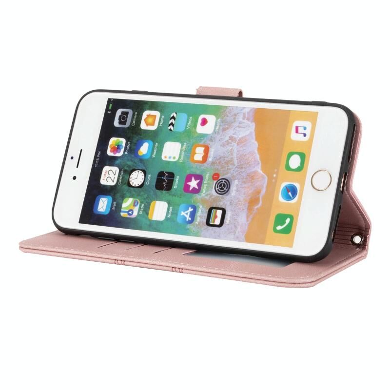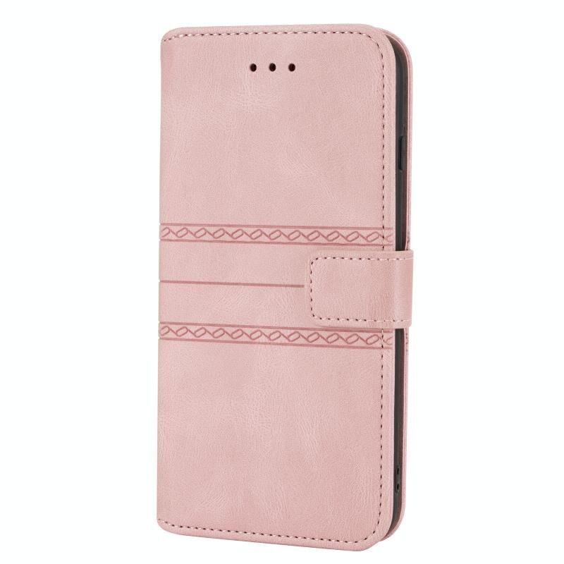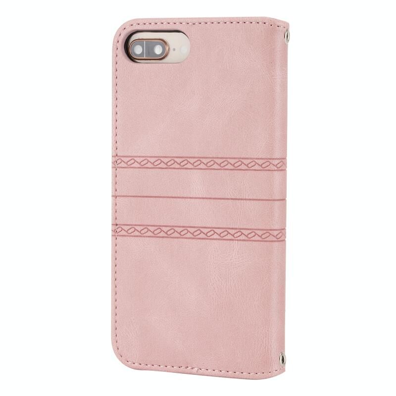 Embossed Striped Magnetic Buckle PU + TPU Horizontal Flip Leather Case with Holder & Card Slot & Wallet & Photo Frame & Sling For iPhone 8 Plus / 7 Plus / 6 Plus(Pink)