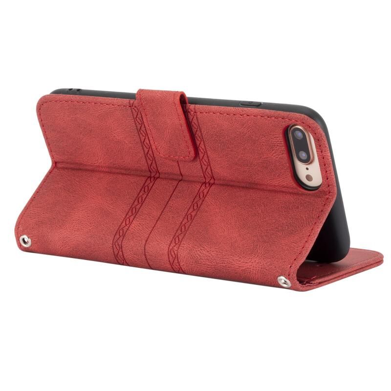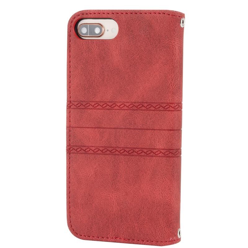 Embossed Striped Magnetic Buckle PU + TPU Horizontal Flip Leather Case with Holder & Card Slot & Wallet & Photo Frame & Sling For iPhone 8 Plus / 7 Plus / 6 Plus(Red)