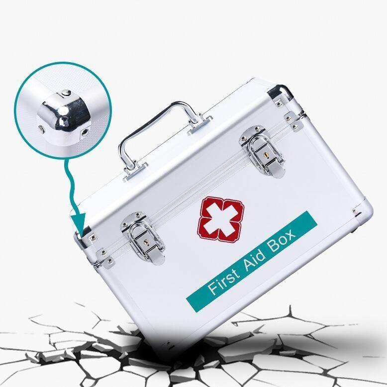 6. Features: beautiful and practical, three-layer storage capacity, separate medicine storage trays, sealed isolation, moisture and light protection, double safety locks effectively prevent children from eating by mistake, aluminum alloy corners are fixed to protect against falling and compression, wear and resistant Scratch, anti-skid particles are comfortable to touch, can be attached to the side with a hook, can be connected to the strap, easy to use and carry, healthy and no smell, strong and durable