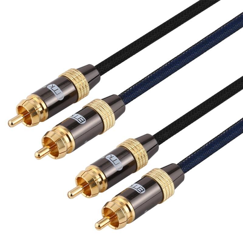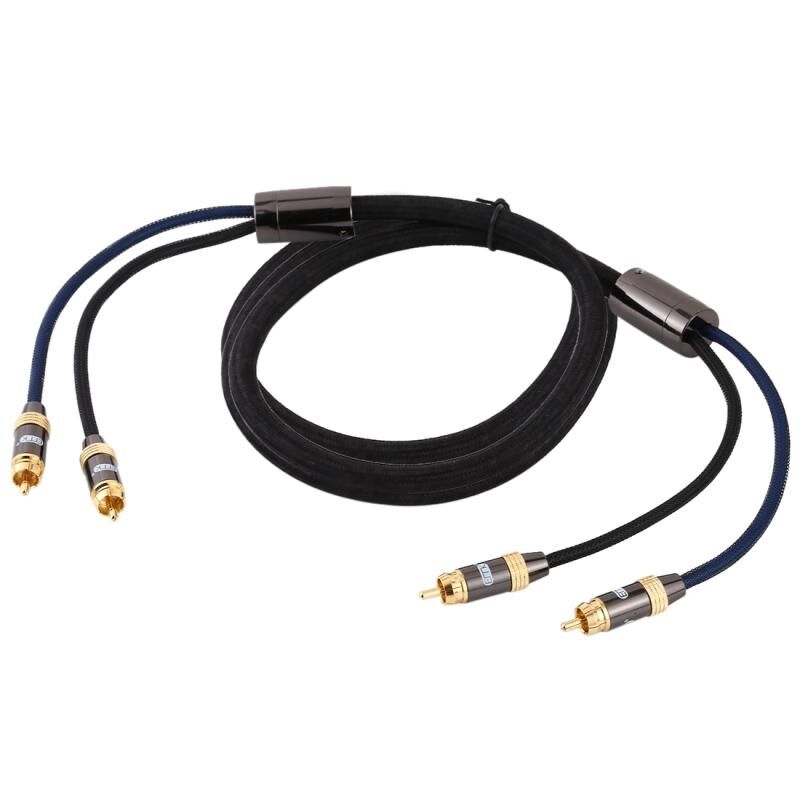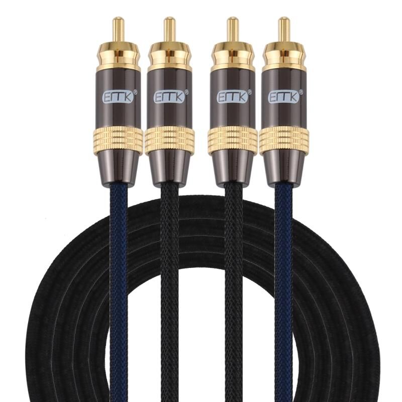 EMK 2 x RCA αρσενικό προς 2 x RCA αρσενικό με επίχρυσο σύνδεσμο Νάιλον πλεξούδα Ομοαξονικό καλώδιο ήχου για τηλεόραση / ενισχυτή / οικιακό θέατρο / DVD, μήκος καλωδίου: 2m (μαύρο) (EMK)