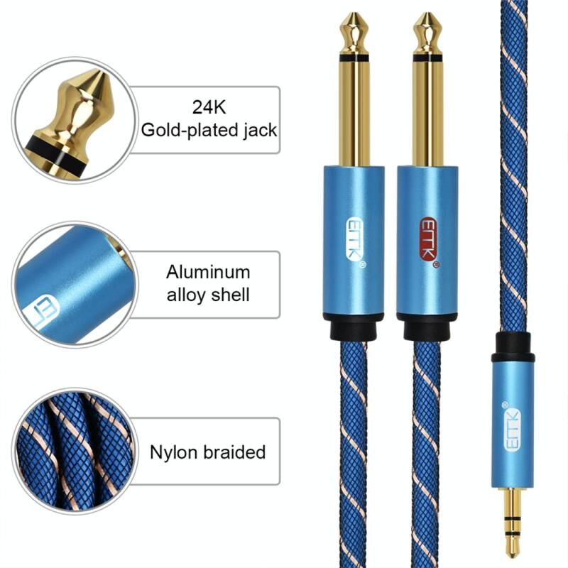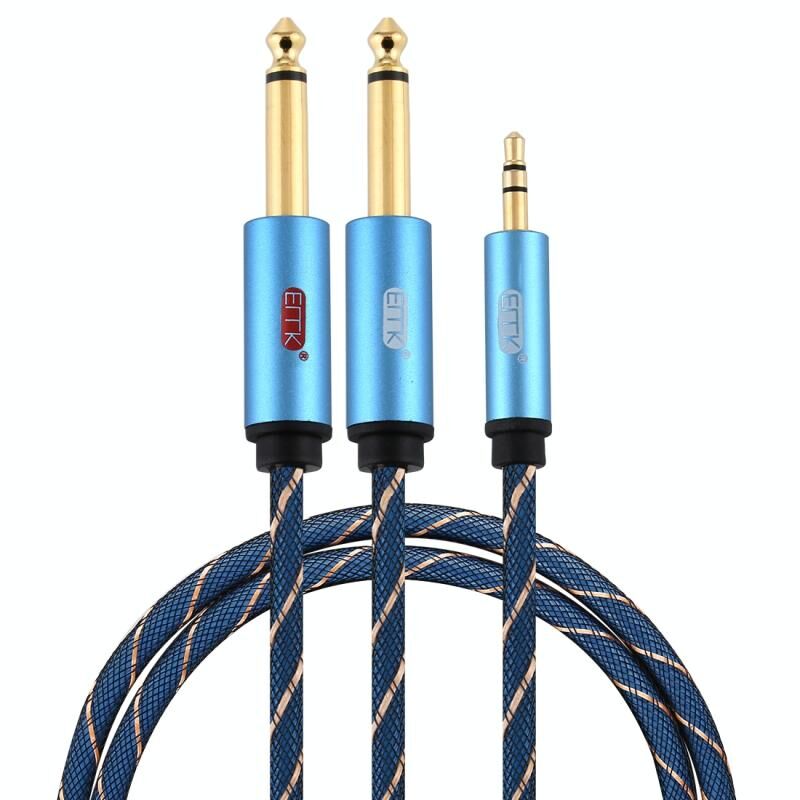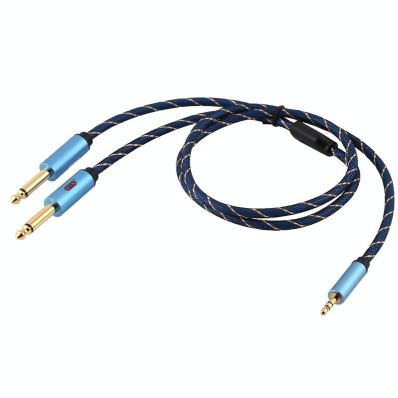 EMK 3.5mm Jack Male σε 2 x 6.35mm Jack Male Gold Plated Connector Nylon Braid AUX Cable για υπολογιστή / X-BOX / PS3 / CD / DVD, μήκος καλωδίου: 1m (σκούρο μπλε)