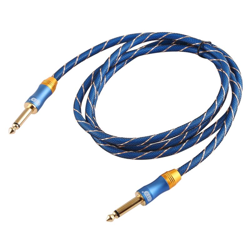 EMK 6.35mm Male to Male 3 Section Gold-plated Plug Grid Nylon Braided Audio Cable for Speaker Amplifier Mixer, Length: 1.5m(Blue) (EMK)