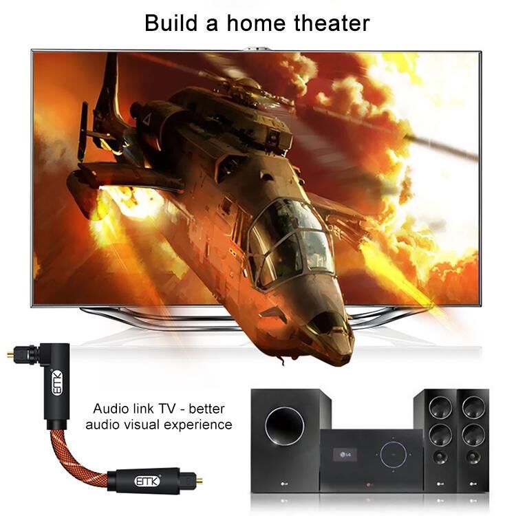 EMK 90 Degree Swivel Adjustable Right Angled 360 Degrees Rotatable Plug Nylon Woven Mesh Optical Audio Cable, Cable Length:1m(Orange) (EMK)