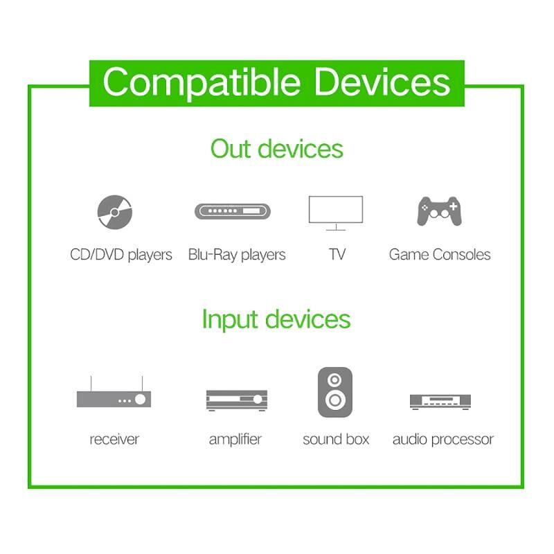 8. Αυτό το καλώδιο οπτικών ινών συνδέεται με το DVD, CD, MINI Disc Player, το TV box, τον προβολέα κ.λπ. και σας παρέχει πλήρως εμπλουτισμένη και λεπτομερή ποιότητα ήχου.