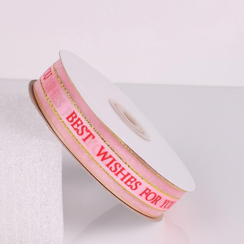 Κορδέλες με Εκτυπωμένα Γράμματα, Δώρων & Ανθοδέσμων, 45m x 2.5cm (Ροζ)