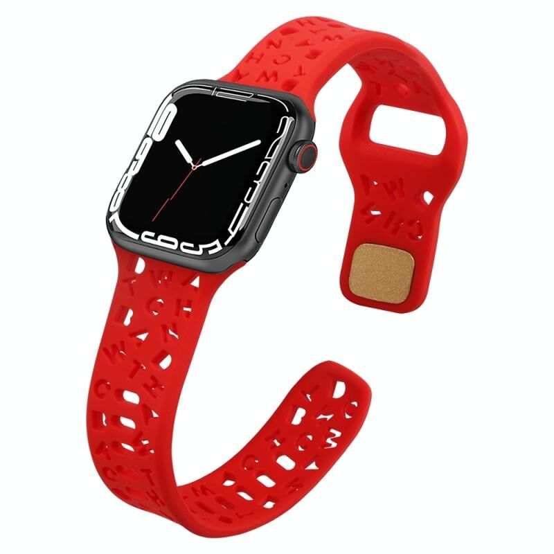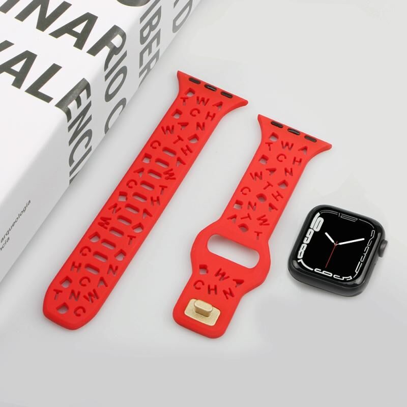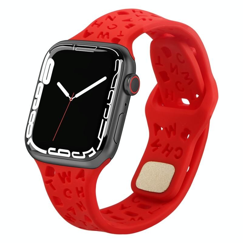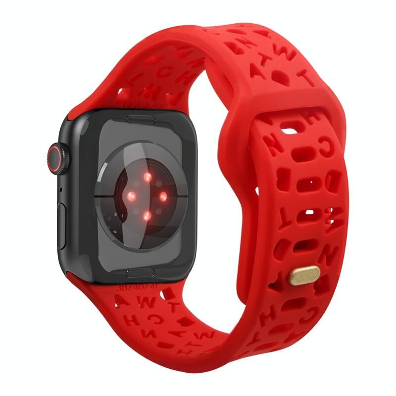 Λουράκι Σιλικόνης για Apple Watch Series 9&8&7 41mm / SE 3&SE 2&6&SE&5&4 40mm / 3&2&1 38mm (Λευκό) με Αγγλικά Γράμματα (Κόκκινο)