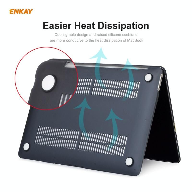 3. Σχεδιασμός δύο τεμαχίων, εύκολη εγκατάσταση και αφαίρεση· τέσσερα λαστιχένια ποδαράκια κρατούν τον φορητό υπολογιστή σταθερό και ασφαλή· το κάτω κάλυμμα του κελύφους αερίζεται για να διευκολύνει τη διάχυση της θερμότητας.