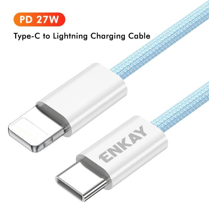 ENKAY CB175 Candy Color PD 27W USB-C / Type-C to 8 Pin Charging Data Cable, Length:2m(Blue) (ENKAY)