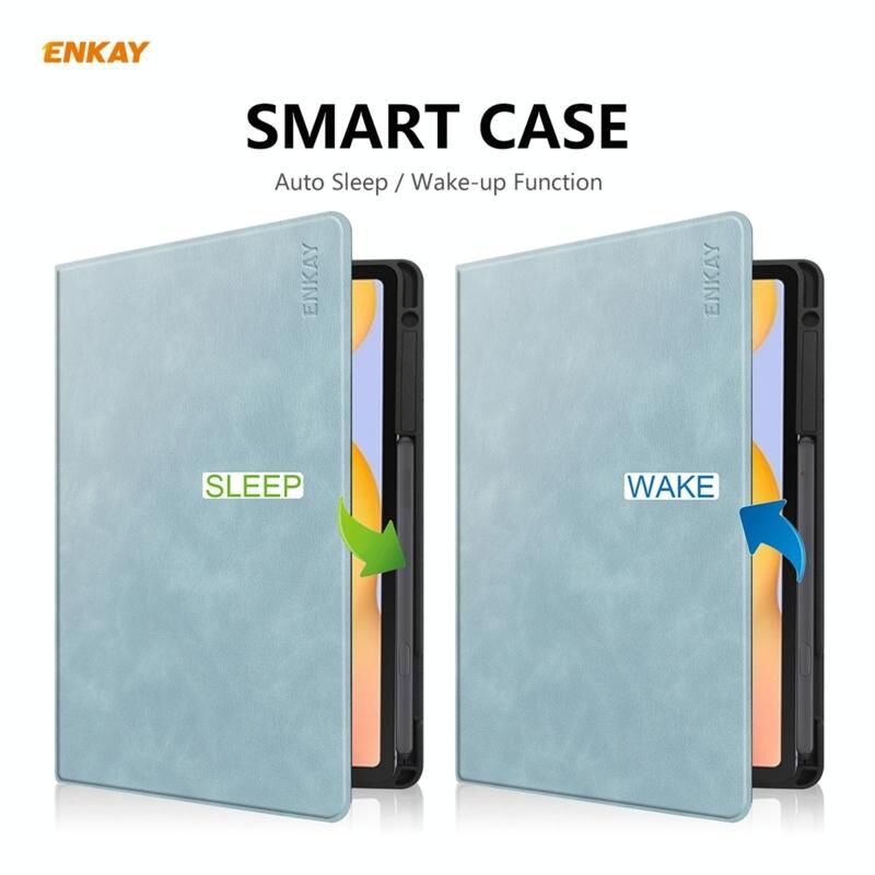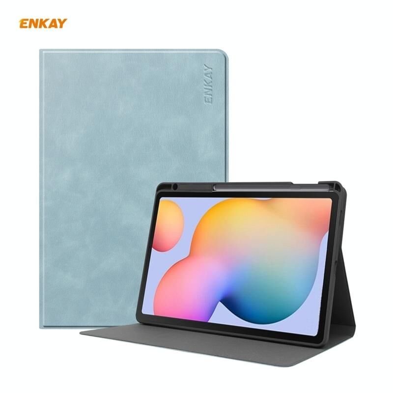 Θήκη Smart από Δερματίνη με Υφή Αγελής + TPU με Θήκη Στυλό για Samsung Galaxy Tab S6 Lite P610 / P615 / Tab S6 Lite 2022 / P613 / P619 (Γαλάζιο του Ουρανού) (ENKAY)