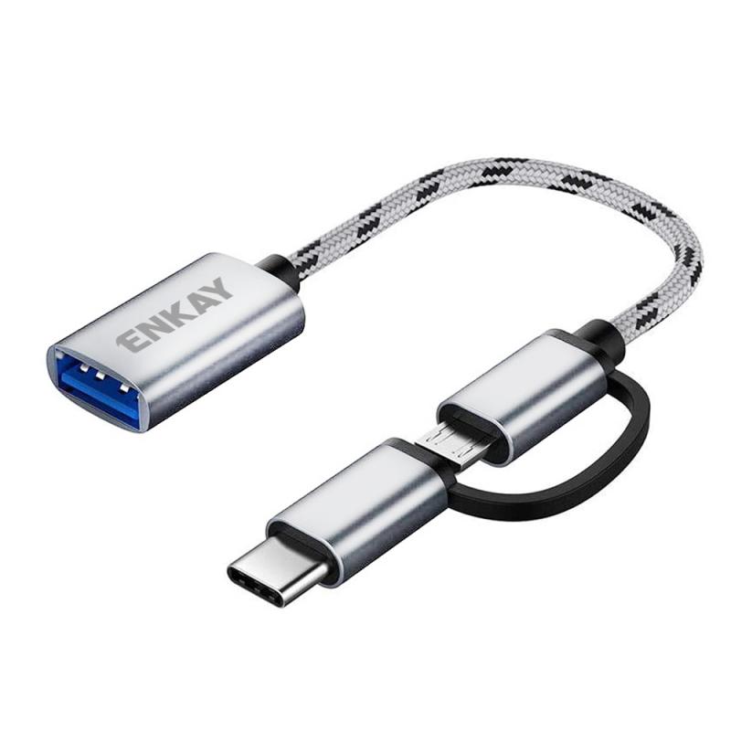 Καλώδιο προσαρμογέα OTG ENKAY ENK-AT113 2 σε 1 Type-C / Micro USB σε USB 3.0 με πλεκτή επένδυση από νάιλον (Ασημί) (ENKAY)