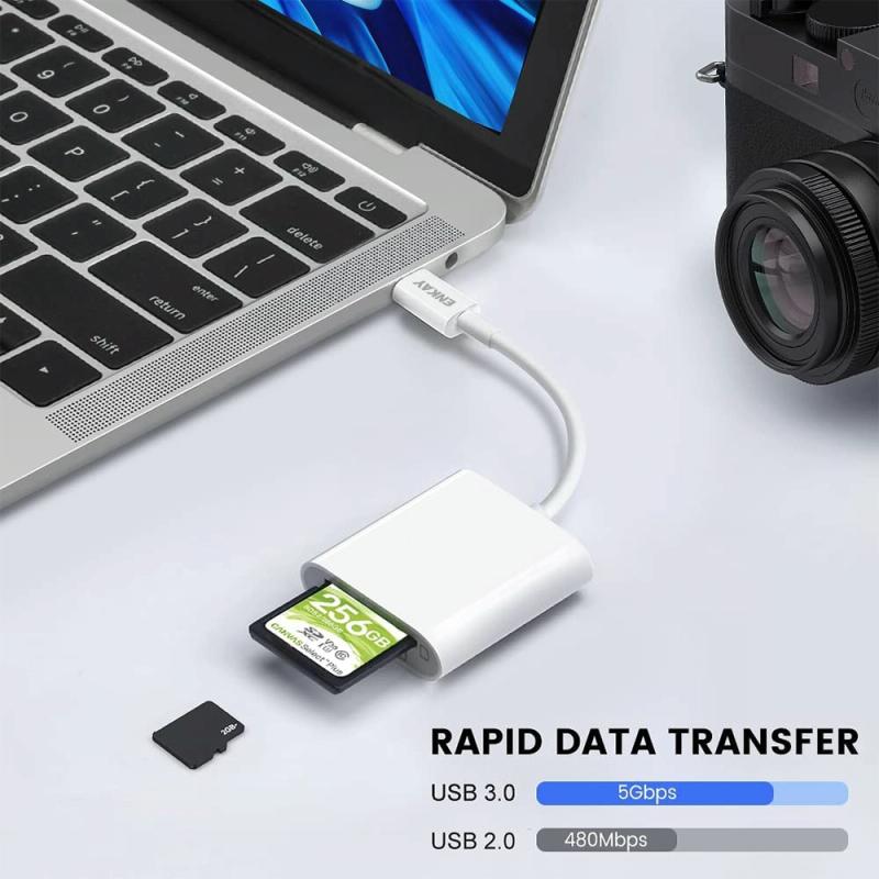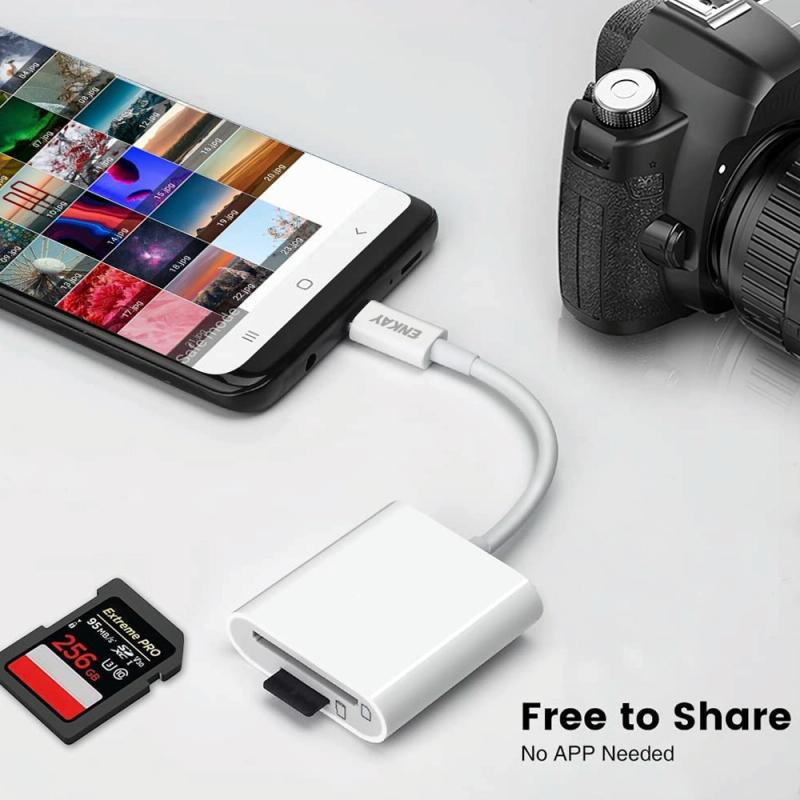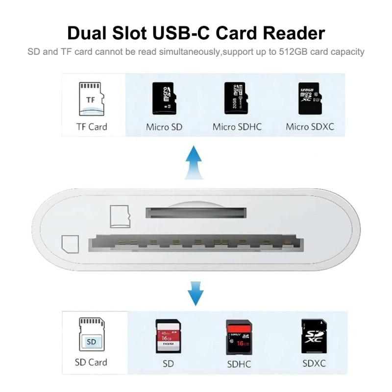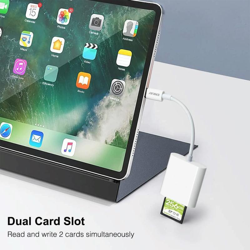 5. Fast & Reliable Connection:Support memory card capacity up to 512GB, fast transfer speed allow HD movies transfer in just seconds. Small form factor, fit two connectors simultaneously. Direct cable connection - stable & reliable, say goodbye to bad wifi/Bluetooth signals. (NOTE: can not read 2 cards simultaneously, only read one card at one time.)