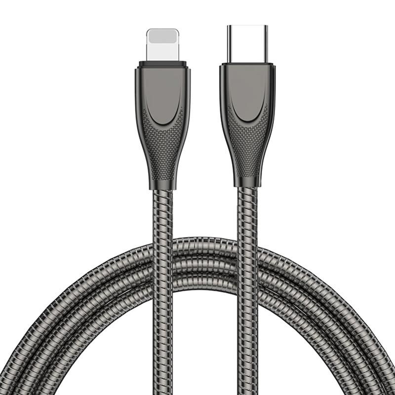 ΕΝΚΑΥ ΕΝΚ-CB128 PD 27W Καλώδιο Γρήγορης Φόρτισης και Μεταφοράς Δεδομένων Type-C σε 8 Pin, από Ατσάλι Άνθρακα, Ελατηριωτό, Μήκος: 2μ (Μαύρο) (ΕΝΚΑΥ)