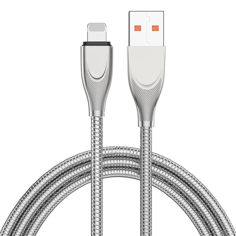 ΕΝΚΑΥ ΕΝΚ-CB131 Καλώδιο USB σε 8 ακίδες από ανθρακούχο ατσάλι για σωλήνα, 2.4A Γρήγορη φόρτιση και μεταφορά δεδομένων, Μήκος: 2μ (Μαύρο) (ΕΝΚΑΥ)