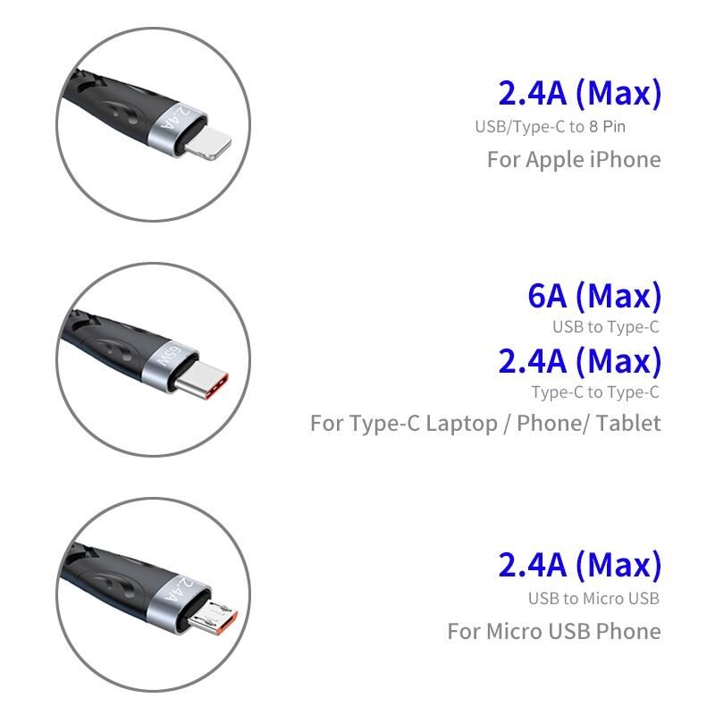 2. Γρήγορη φόρτιση 60W & Μεταφορά δεδομένων: Έξοδος ρεύματος έως 6A (USB σε Type-C), η οποία διασφαλίζεται από ασφαλή φόρτιση υψηλής ταχύτητας. Το USB 3.0 υποστηρίζει μεταφορά δεδομένων έως 480Mbps. Υποστηρίζει ταυτόχρονη φόρτιση και μετάδοση δεδομένων.