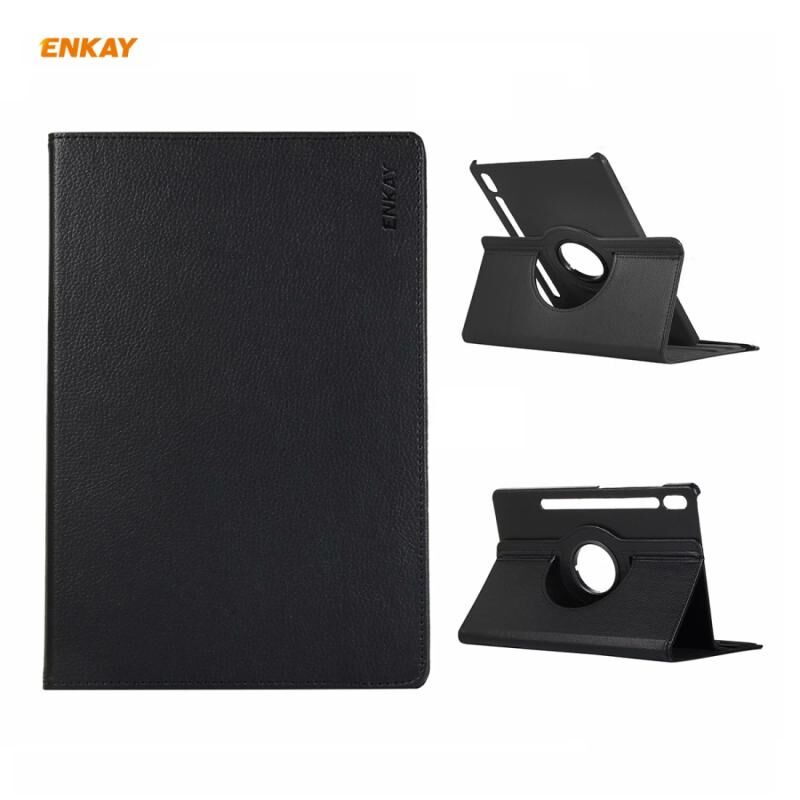 Θήκη ENKAY για Samsung Galaxy Tab S8 / Galaxy Tab S7 11.0 T870 / T875 ENK-8012, περιστρεφόμενη 360 μοιρών με υφή λυτσί, οριζόντια, από δερματίνη PU με βάση στήριξης & λειτουργία αυτόματου ύπνου/αφύπνισης (Μαύρο) (ENKAY)