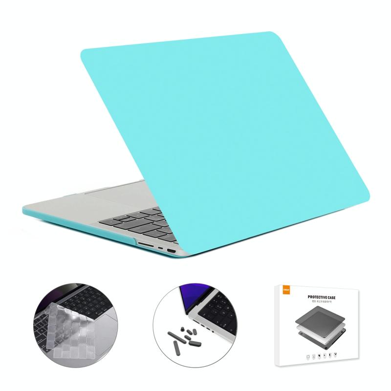 ENKAY Hat-Prince 3 in 1 Matte Laptop Protective Case + TPU Keyboard Film + Anti-dust Plugs Set for MacBook Pro 16.2 inch A2485 2021/A2880 2023, Version:EU Version(Cyan) (ENKAY)