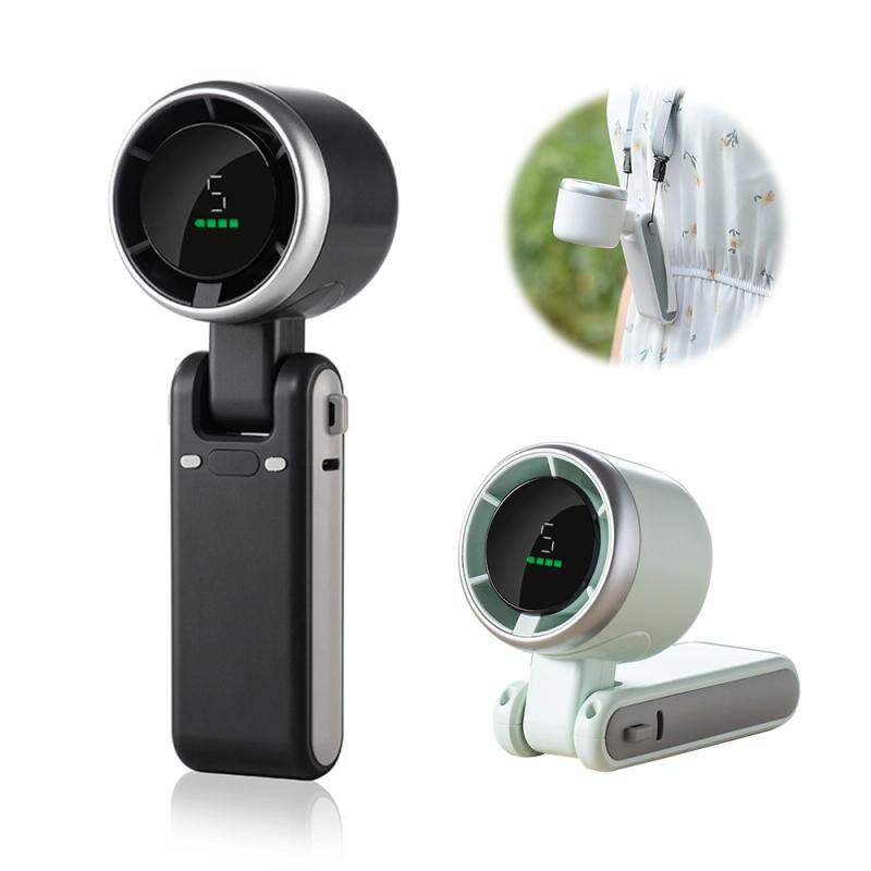 4.【Digital Display - Power Reminder】 This portable fan for travel is equipped with a high-definition digital display screen, which can show the current wind speed and remaining battery power, so you no longer need to worry about the remaining power of the fan. When the battery of this mini fan is low, you can arrange for charging in advance, ensuring a cool companion on every trip.