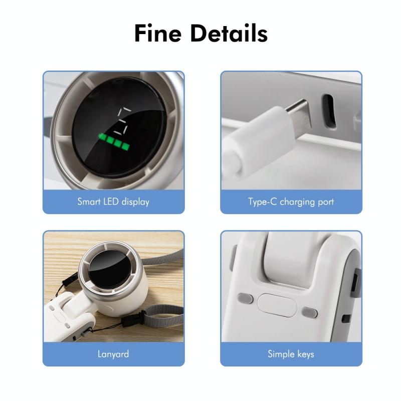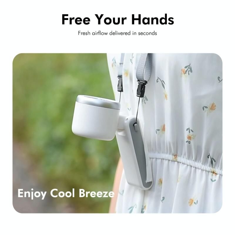 6.【3-in-1 Multi-Function Fan】Use this fan as a handheld fan, neck fan, or desk fan. With its 180° adjustment feature, you can easily fold it and wear it around your neck as a neck fan.