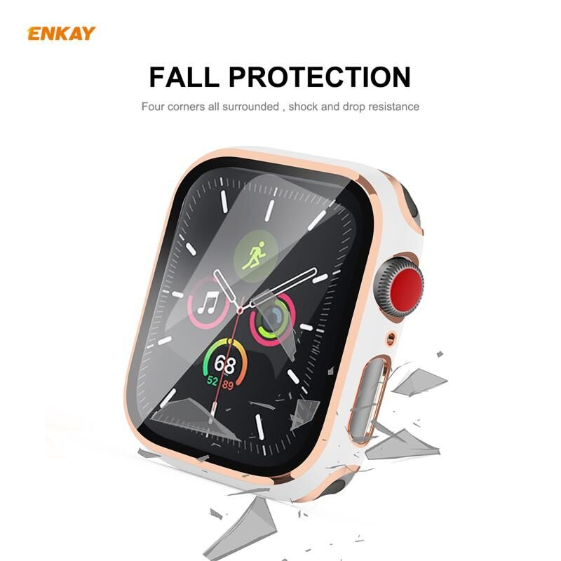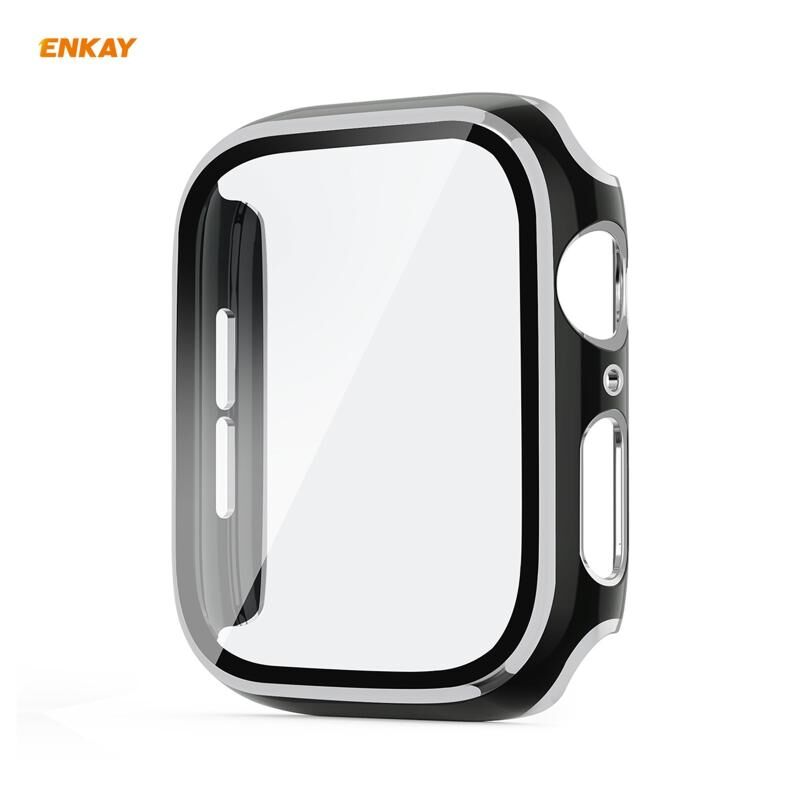 ENKAY Hat-Prince Full Coverage Electroplated PC Case + Tempered Glass Protector for Apple Watch Series 6 / 5 / 4 / SE 40mm(Black+Silver) (ENKAY)