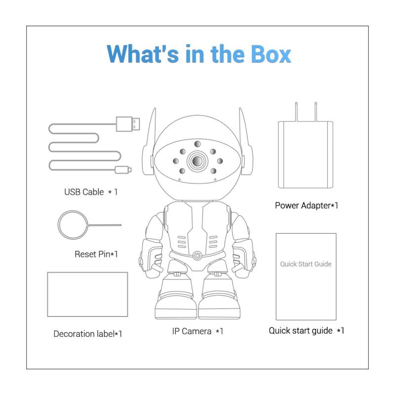 5. Accessories: Camera x 1, Power supply x 1, USB cable x 1, Screw package x 1, Manual x 1