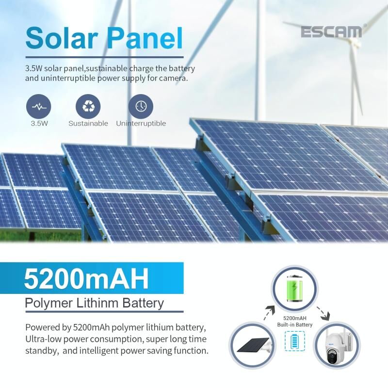 ESCAM QF103 3MP Cloud Storage PT WIFI PIR συναγερμός IP κάμερα με ηλιακό πάνελ υποστήριξη μπαταρίας πλήρους έγχρωμης νυχτερινής όρασης & αμφίδρομου ήχου (ESCAM)