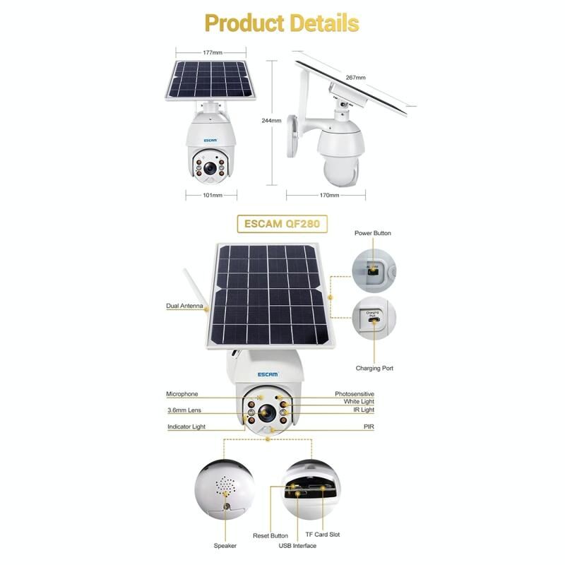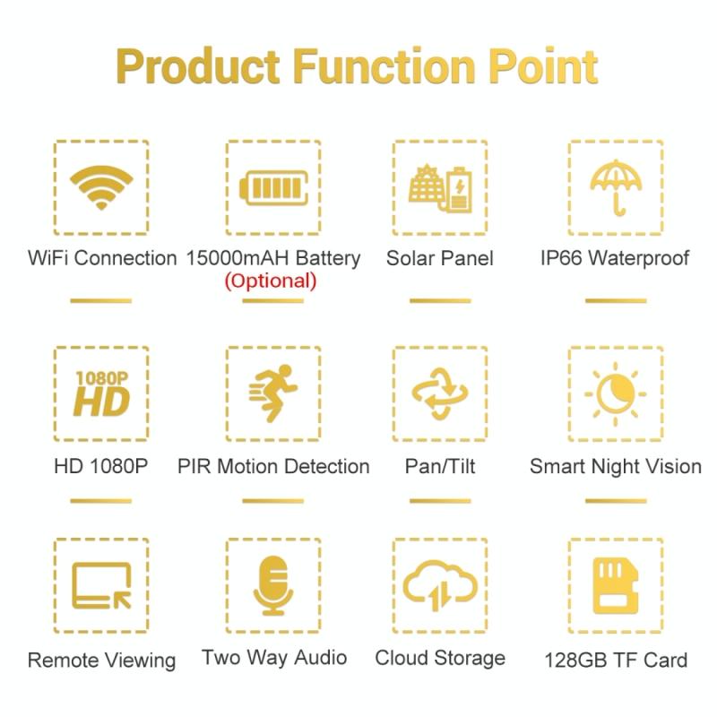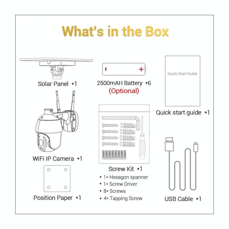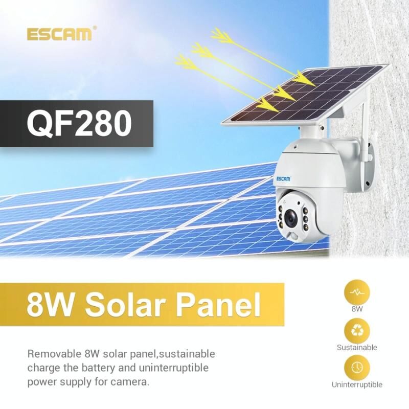 9. Removable 8W solar panel, sustainable charge the battery and uninterruptible power supply for camera