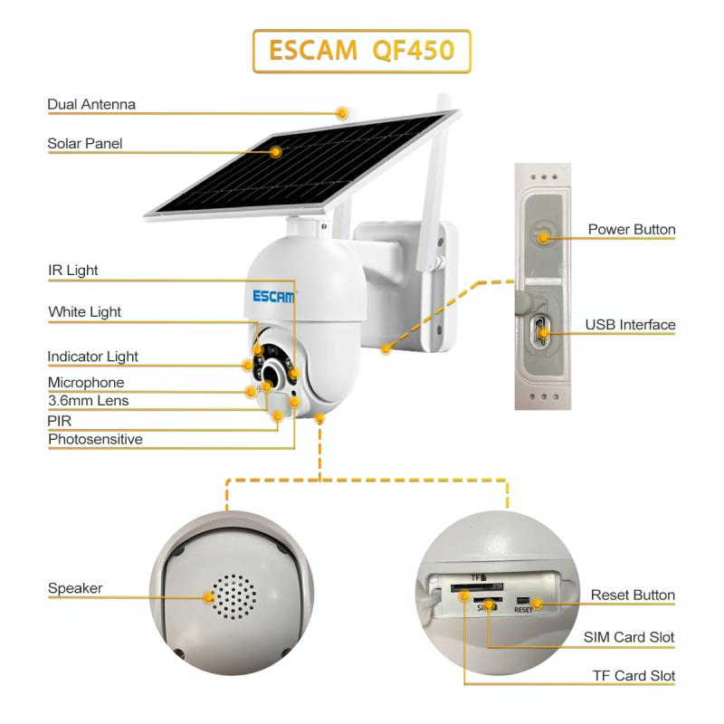3. Built-in 14400 mAh rechargeable lithium battery, continuous charging of removable solar panel, ultra-low power consumption, ultra-long standby