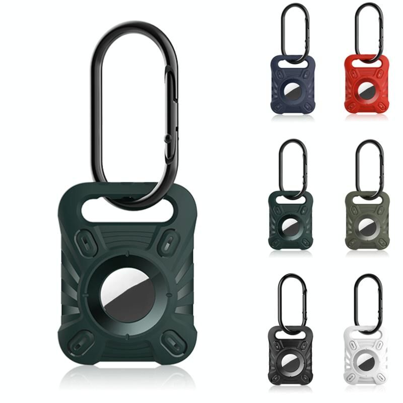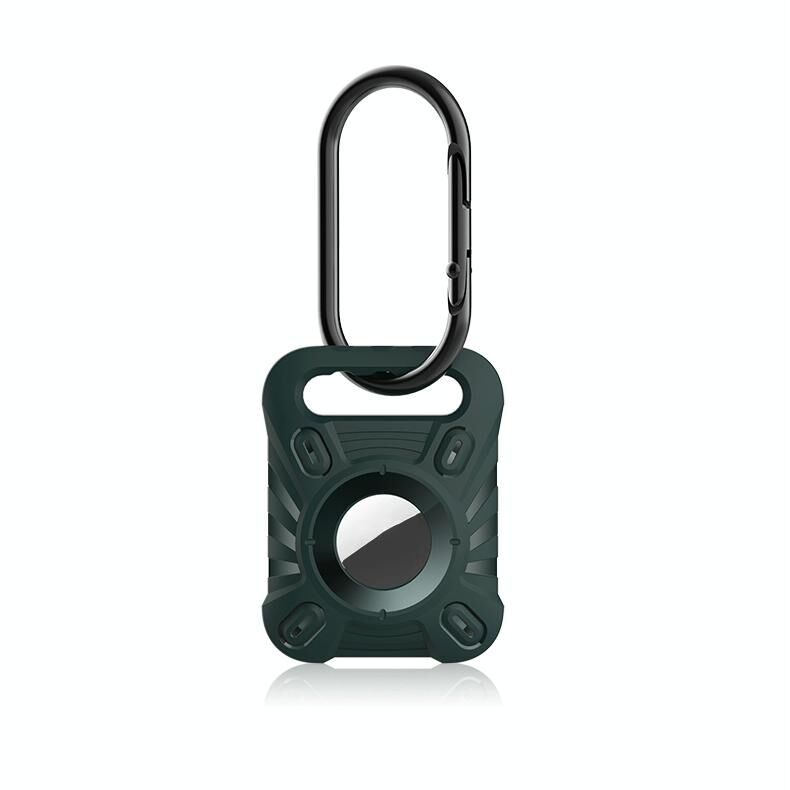 ET Series Anti-scratch Shockproof TPU Protective Cover Case with Carabiner For AirTag(Dark Green)