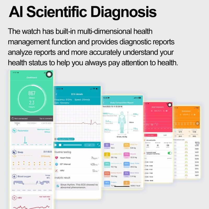 3. Λειτουργία HRV, διάγνωση ιατρικής με AI, λειτουργία Mett, λειτουργία SOS για κλήση έκτακτης ανάγκης, παρακολούθηση θερμοκρασίας, παρακολούθηση οξυγόνου αίματος, παρακολούθηση αρτηριακής πίεσης