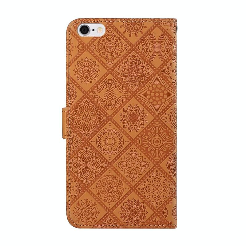 Θήκη δέρματος οριζόντιας αναδίπλωσης με ανάγλυφο σχέδιο εθνοτικού στυλ, με θήκη, υποδοχές καρτών, πορτοφόλι και κορδόνι για iPhone 6 Plus (Καφέ)