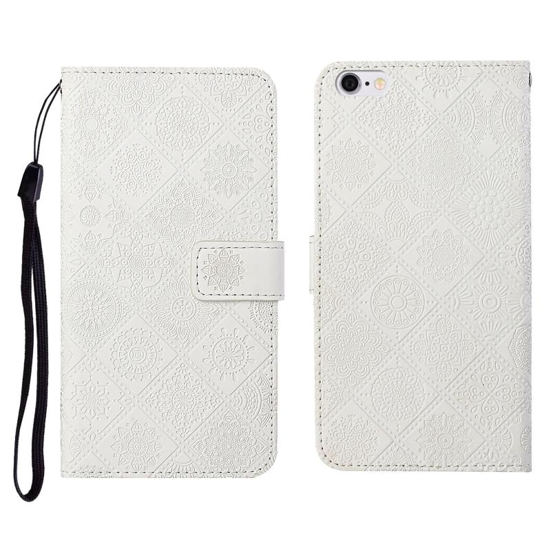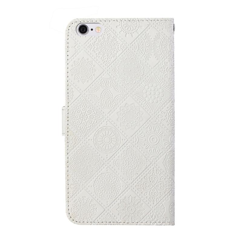 Θήκη δέρματος οριζόντιας αναδίπλωσης με ανάγλυφο σχέδιο εθνοτικού στυλ, με θήκη, υποδοχές καρτών, πορτοφόλι και κορδόνι για iPhone 6 Plus (Λευκό)