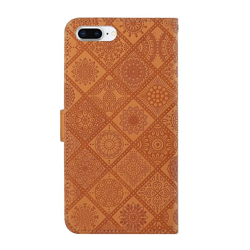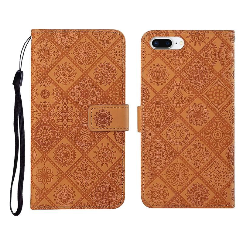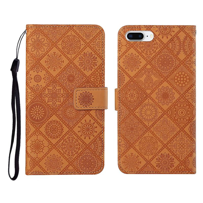Θήκη δέρματος οριζόντιας αναδίπλωσης με ανάγλυφο σχέδιο εθνοτικού στυλ, με θήκη, υποδοχές καρτών, πορτοφόλι και κορδόνι για iPhone 8 Plus / 7 Plus (Καφέ)
