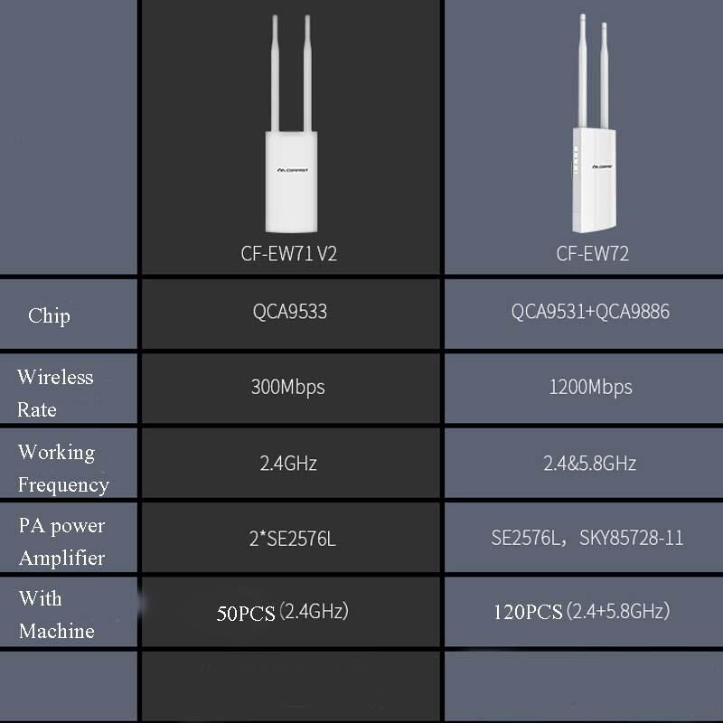 6. EW71 is suitable for general outdoor environments with few end users and less interference, EW72 is suitable for outdoor environments with many end users and high requirements for multiple wireless networks