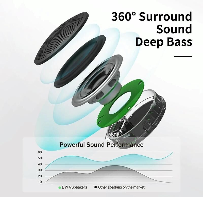 5. Αδιάβροχο ηχείο Bluetooth IPX7, στο ντους, βυθίστε το στην πισίνα ή βρέξτε το σε μια βροχερή μέρα—η αδιάβροχη θήκη IPX7 θα προστατεύσει ακόμα όλα τα σημαντικά πράγματα στο εσωτερικό.