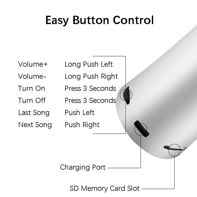 8. Easy button control, you can press buttons to turn on/off, play/pause, switch mode, skip songs, adjust volume etc.