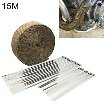 15m Titanium Gold Exhaust Wrap Auto Motor Exhaust Heat Shield Wrap Heat Resistant Wrap