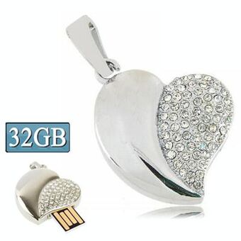 Ασημένια καρδιά σε σχήμα διαμαντιού Κοσμήματα USB Flash Disk, Ειδικό για δώρα για την Ημέρα του Αγίου Βαλεντίνου (32GB) (Ασημί)