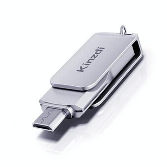 Kinzdi 64GB USB + διεπαφή τύπου C Μεταλλικός δίσκος flash twister V8 (ασημί) (Kinzdi)