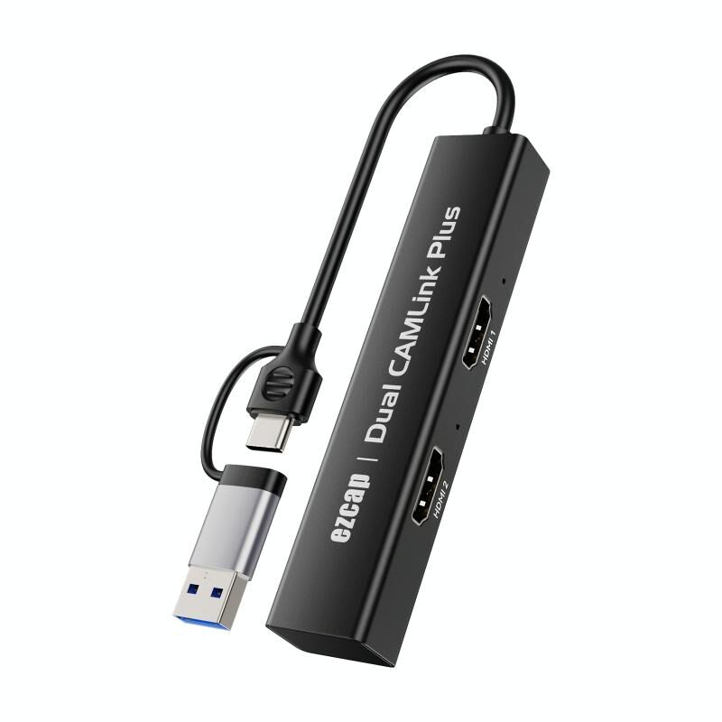 2. How to use: Connect the device to USB3.0 port of the computer, wait a moment, the system will automatically recognize the Dual CAMLink Plus device, and you will find the device name 2CAMLinkP CH1 and 2CAMLinkP CH2 in the Cameras catalog and Sound video and game controllers catalog on device manager, which means the device is ready to work.