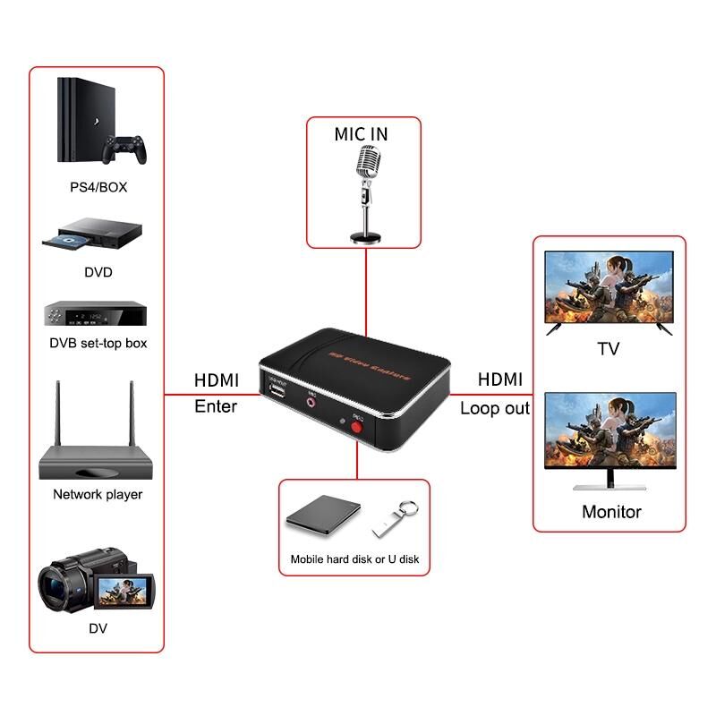 7. Mic: connect a microphone and record voice comments when play game