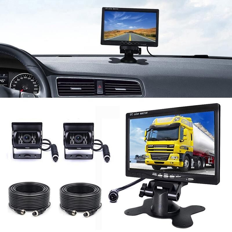 F0505 7 inch HD Car Dual Camera Rearview Mirror Monitor, with 2 x 10m Cable