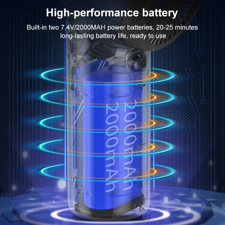 3. Built-in two 7.4V/2000mAh power batteries, 20-25 minutes long-lasting battery life