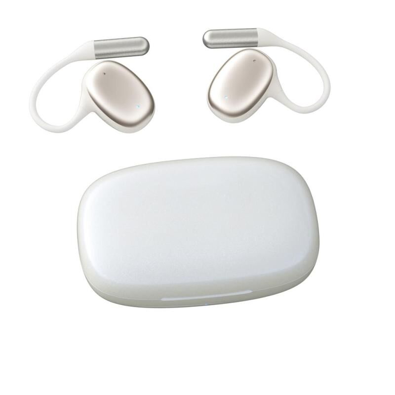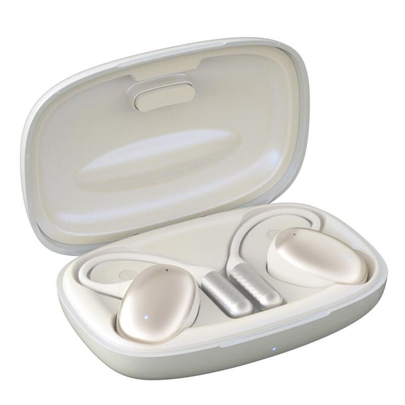 Ακουστικά Bluetooth 5.4 F20 με Άγκιστρο Αυτιού, ANC Μείωση Θορύβου, Αδιάβροχα IPX5 (Κρεμώδες Δέρμα)