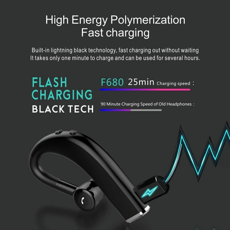 Ακουστικά Bluetooth F680 5.0, Γρήγορη Φόρτιση, Ασύρματα, Επιχειρηματικά, Αθλητικά (Μαύρα)
