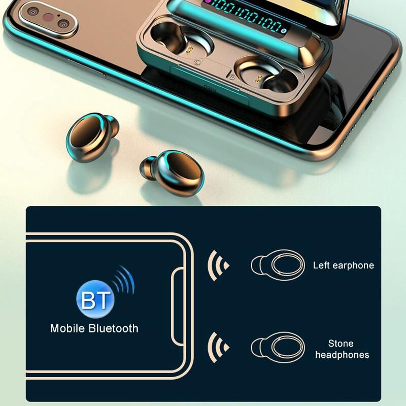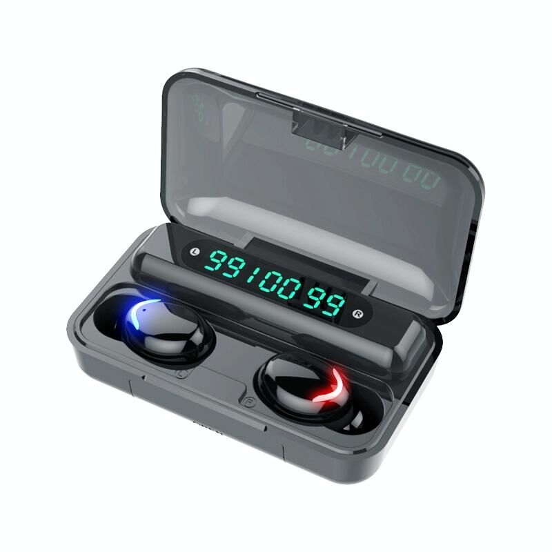 6. Με τρεις ψηφιακές οθόνες LED, η μεσαία ψηφιακή οθόνη εμφανίζει την στάθμη της μπαταρίας της θήκης φόρτισης και οι αριστερή και δεξιά ψηφιακές οθόνες εμφανίζουν την στάθμη της μπαταρίας του αριστερού και δεξιού ακουστικού αντίστοιχα.