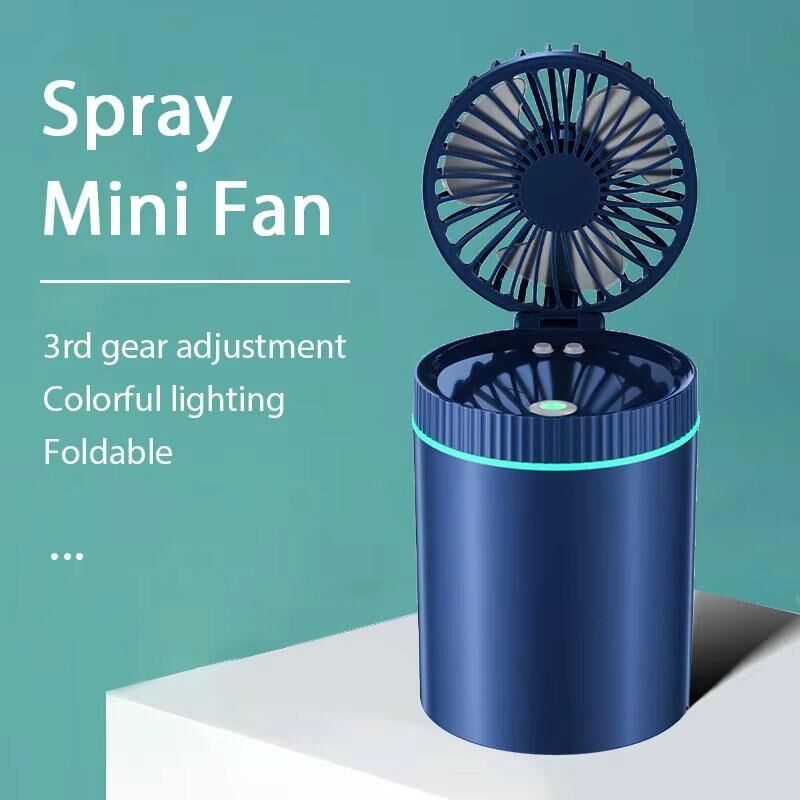 F98 Spray Cooling Desktop Small Fan Bedroom Office Portable Humidifier With Colored Lights, Color: Battery (Blue)