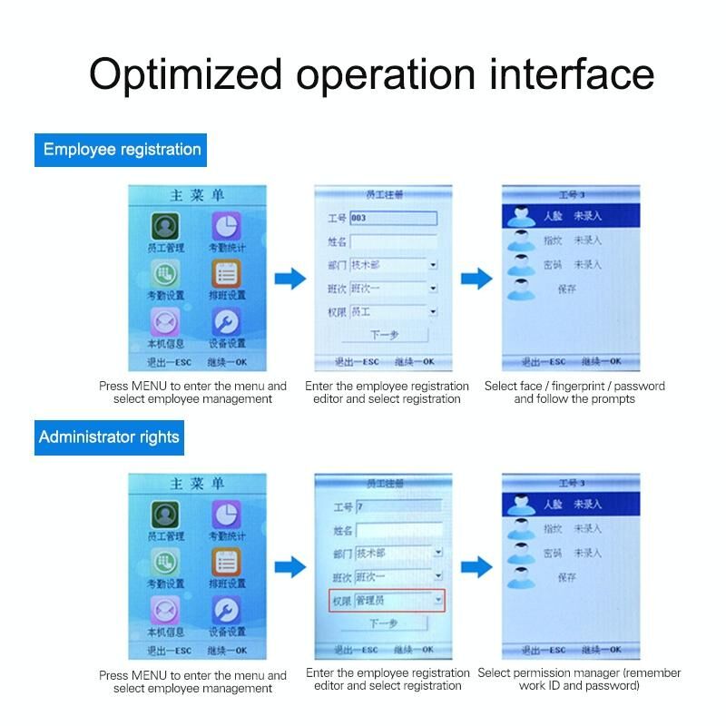 5. Μπορείτε να εισάγετε και να εξάγετε πληροφορίες εργαζομένων και ρυθμίσεις προγράμματος μέσω μονάδας flash USB, να δημιουργείτε αυτόματα αναφορές και να τις κατεβάζετε και να τις ανοίγετε σε υπολογιστή μέσω μονάδας flash USB. Οι πληροφορίες παρουσίας είναι σαφείς με μια ματιά.