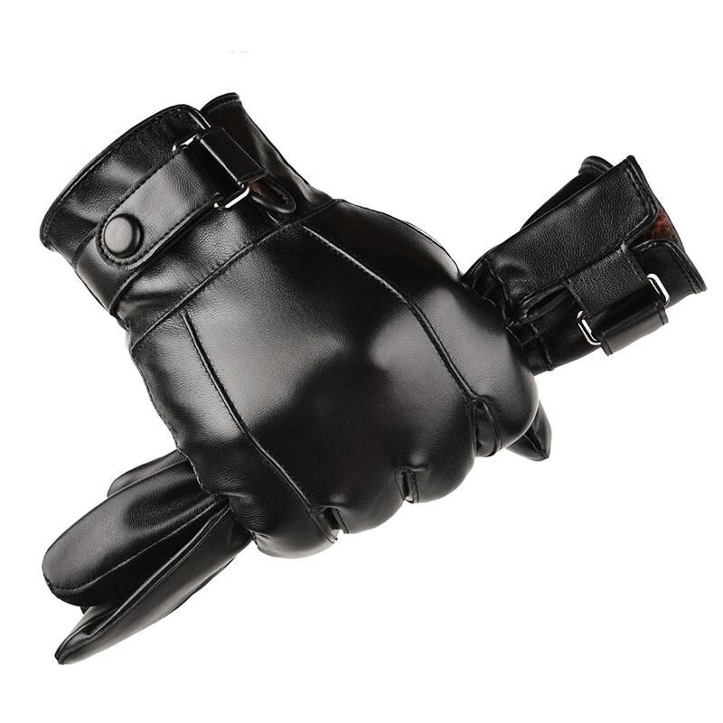 Γάντια Δερμάτινα Ανδρικά Φθινοπωρινά/Χειμερινά, PU, Βελούδο, Ζεστά, για Μοτοσυκλέτα, Οδήγηση, με Αφή (Touchscreen), Μέγεθος: Μέσο (Μαύρο)